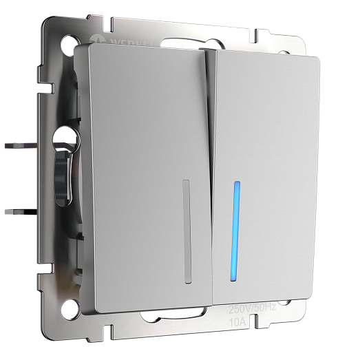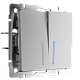 Выключатель двухклавишный проходной с подсветкой (серебряный)