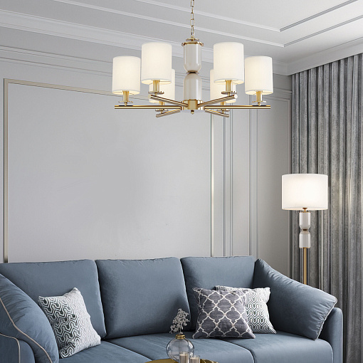 Подвесная люстра с тканевыми абажурами 60146/6 латунь
