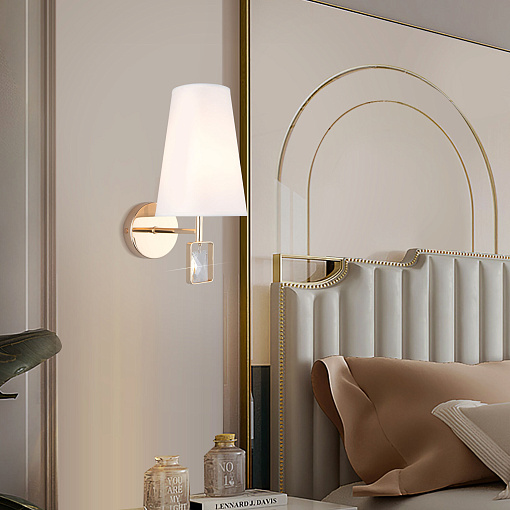 НАСТЕННЫЙ СВЕТИЛЬНИК С ТКАНЕВЫМ АБАЖУРОМ 60137/1 золото