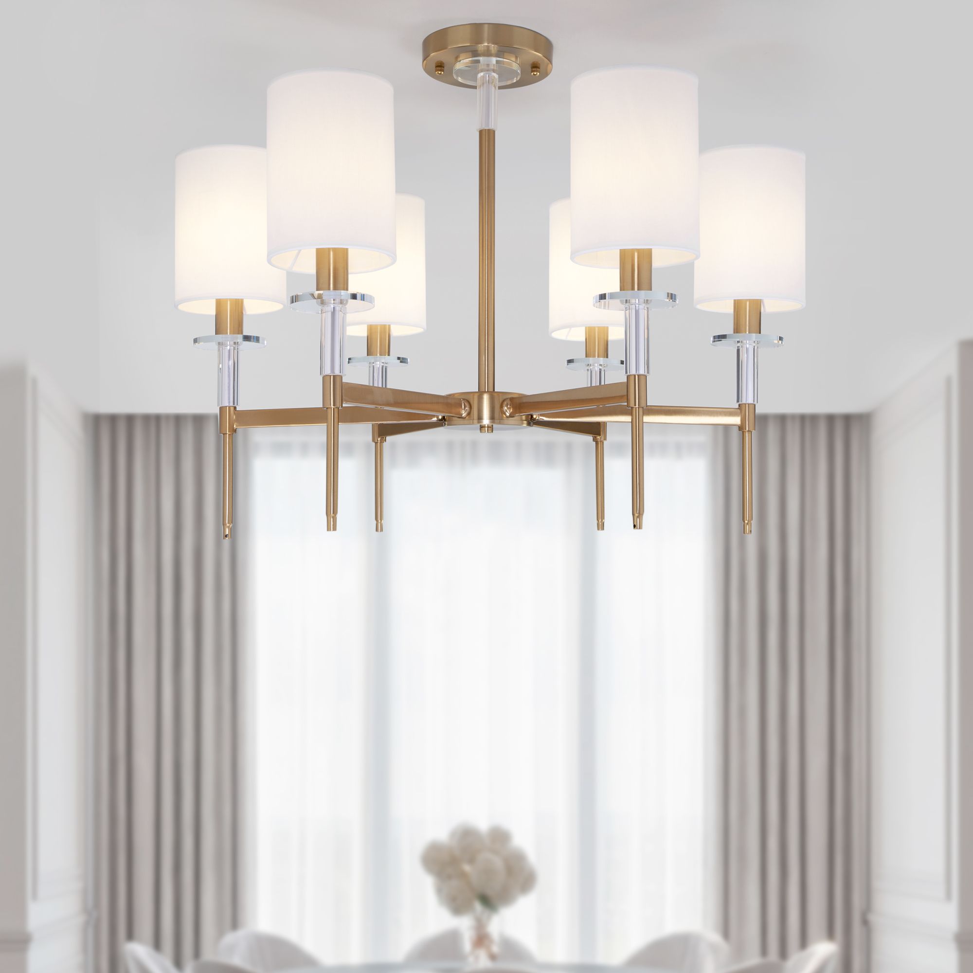 Потолочная люстра с тканевыми абажурами 60132/6 латунь