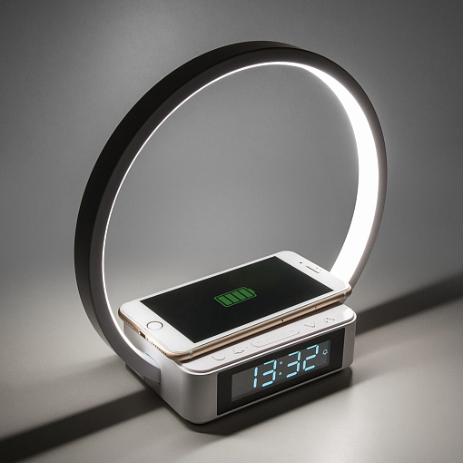 Настольный светодиодный светильник с беспроводной зарядкой и будильником 80505/1 белый