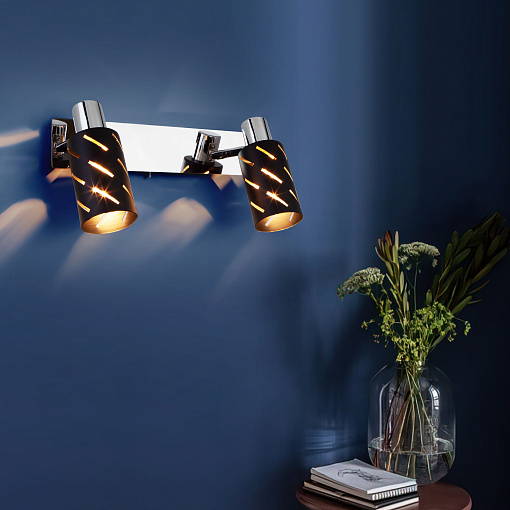 Настенный светильник с металлическими плафонами 20090/2 черный / хром