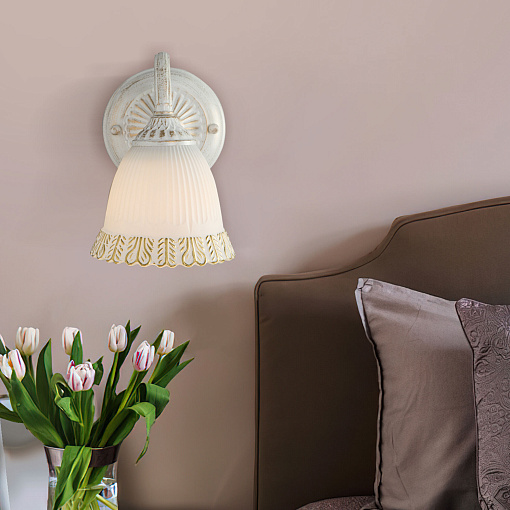 Настенный светильник со стеклянным плафоном 60107/1 белый с золотом