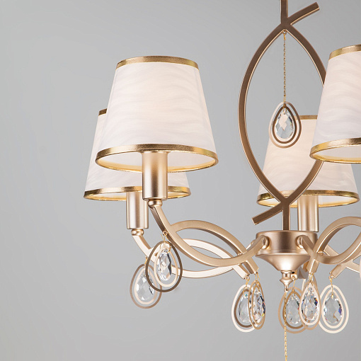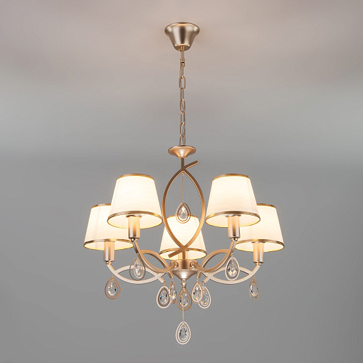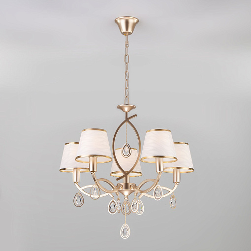 Подвесная люстра с тканевыми абажурами 60091/5 перламутровое золото