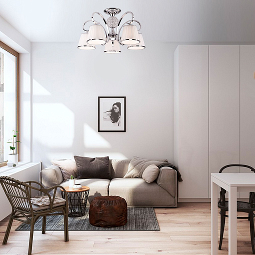 Потолочная люстра с тканевыми абажурами 60088/5 хром