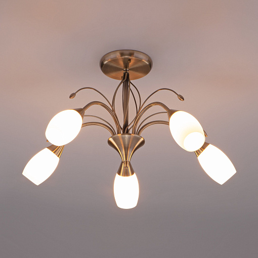 Потолочная люстра со стеклянными плафонами 30280/5 античная бронза