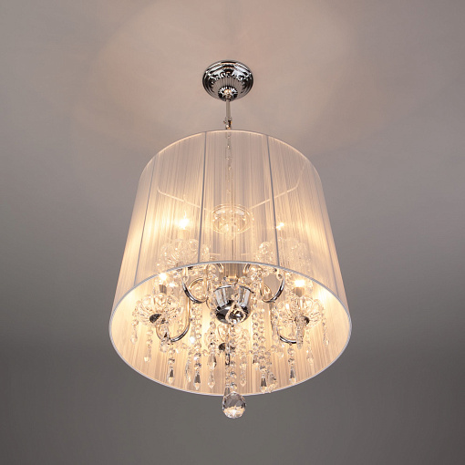 Подвесная люстра с абажуром 2045/5 хром / белый