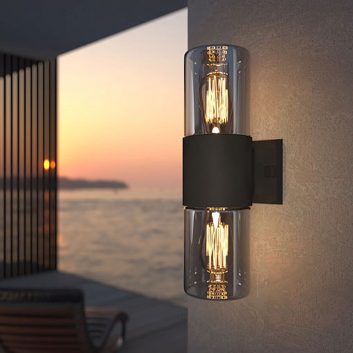 Уличный настенный светильник Roil чёрный/дымчатый плафон IP54 35125/D