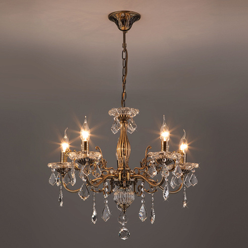 Подвесная люстра с хрусталем 3281/5 античная бронза