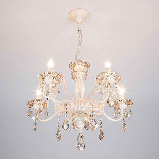 Подвесная люстра с хрусталем 3281/5 белый с золотом