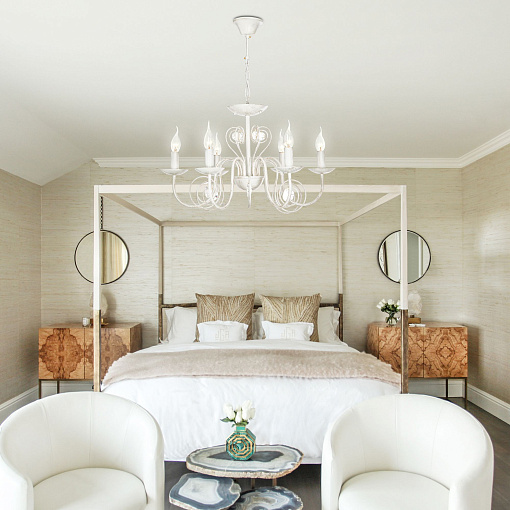 Подвесная люстра с хрусталем 60018/6 белый с золотом