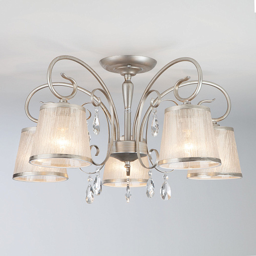 Потолочная люстра с тканевыми абажурами 60065/5 серебро