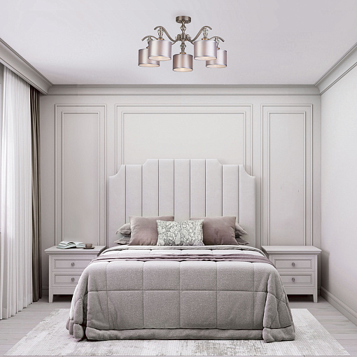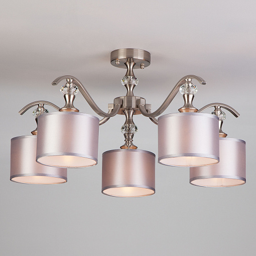 Потолочная люстра с тканевыми абажурами 60070/5 сатин-никель