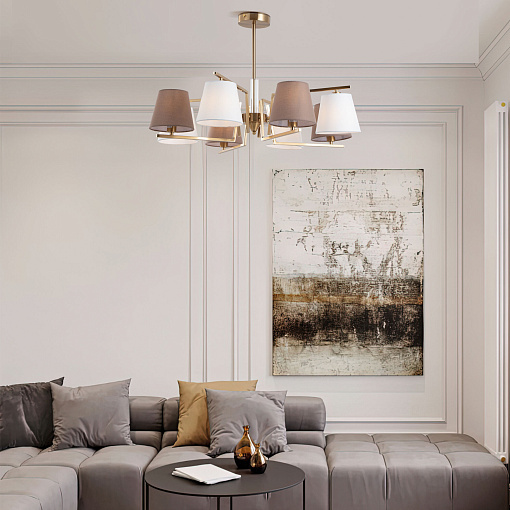 Потолочная люстра с тканевыми абажурами 60149/8 латунь