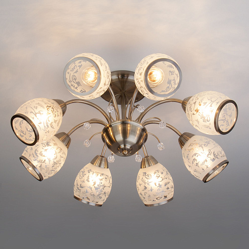 Потолочная люстра со стеклянными плафонами 30026/8 античная бронза