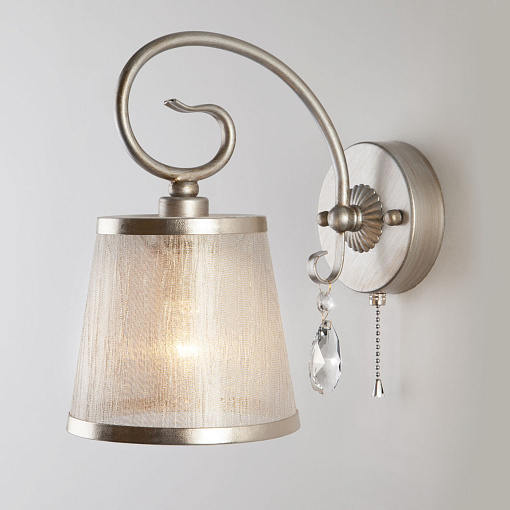 Настенный светильник с тканевым абажуром 60065/1 серебро