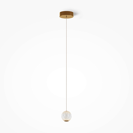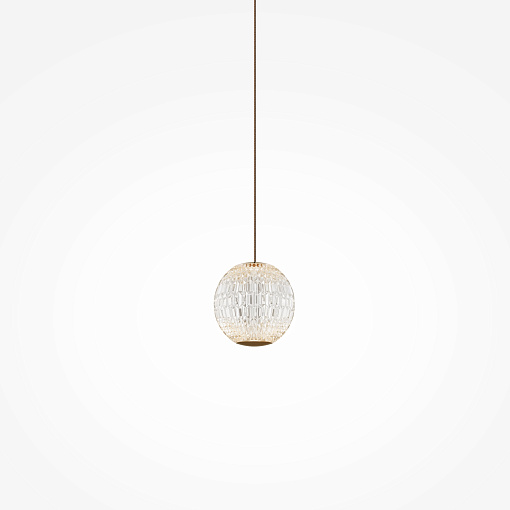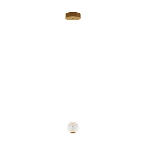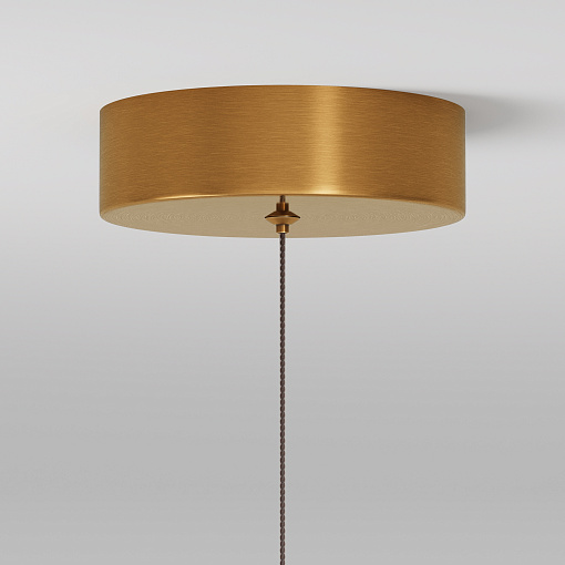 Цвет арматуры — латунь, плафоны из прозрачного акрила. Подвесной светильник с прочными и легкими плафонами из акрилового стекла снаб жен встроенным LED-источником света. LED-модуль дает теплый свет с цветовой температурой 3000К. Длина провода — 3 метра, ее можно  регулировать для установки в помещении с высокими потолками.