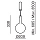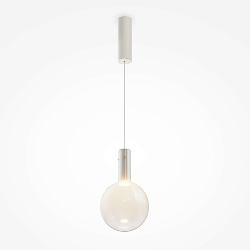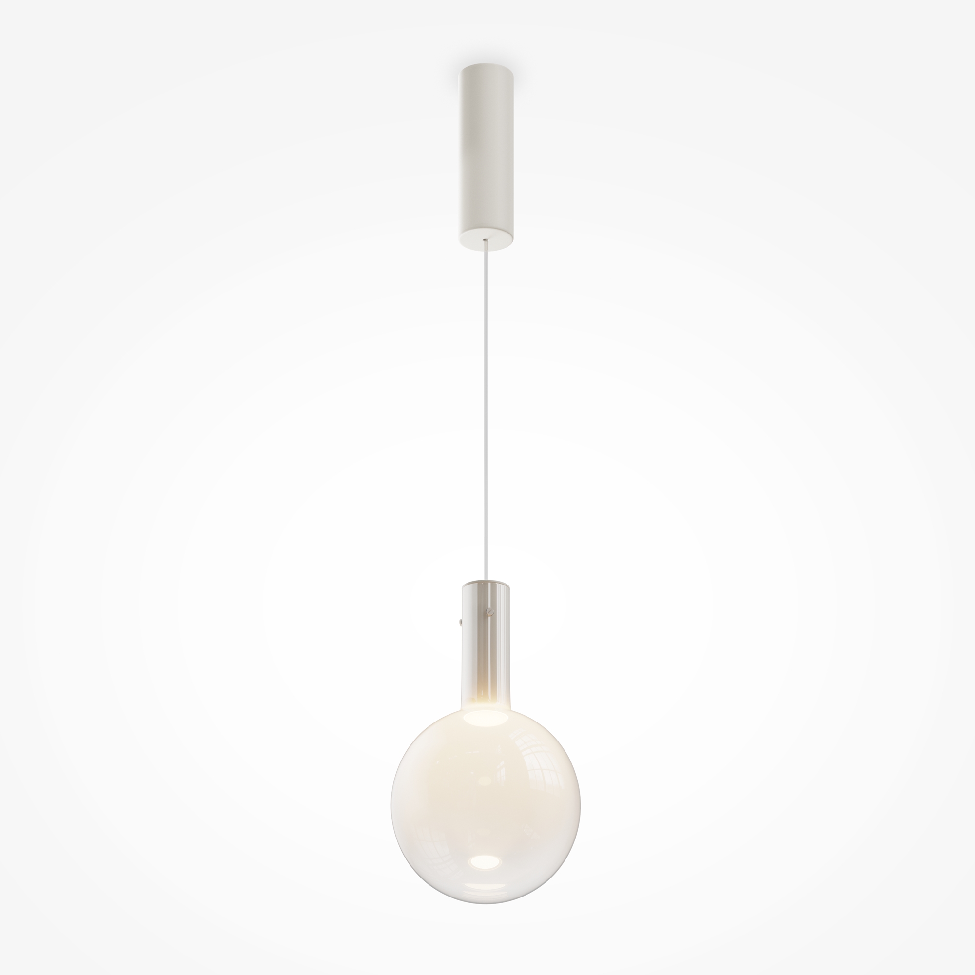 Металлическая арматура, цвет - черный, белый.  Выдувной плафон-шар из стекла с вытянутым цилиндрическим основанием в трех цветах: дымчато-черный, туманно-белый, бежево-коньячный. LED-источник света в основании плафона. Цветовая температура 3000К. Два диаметра плафонов и регулируемая длина проводов для создания разнообразных композиций.