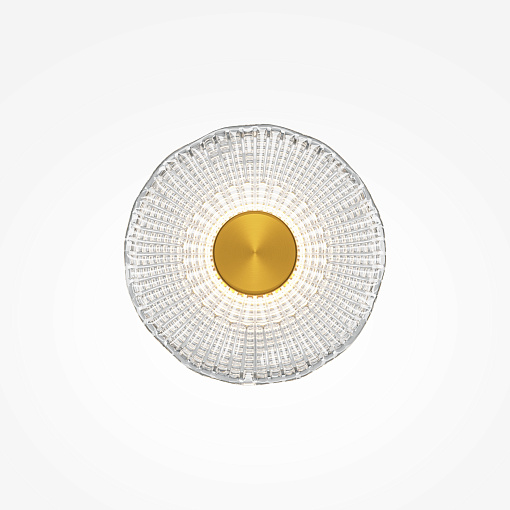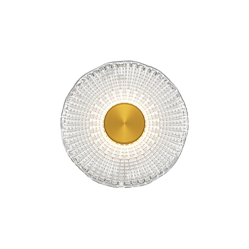 Металлическая арматура, цвет - латунь. Декоративные плафоны из литого стекла. Они рассеивают свет и дают легкие блики на стенах. Стекло плафонов может быть прозрачным или тонированным с паттерном молочного оттенка. Встроенный LED-источник света имеет цветовую температуру 3000 К, угол рассеивания — 120 градусов.