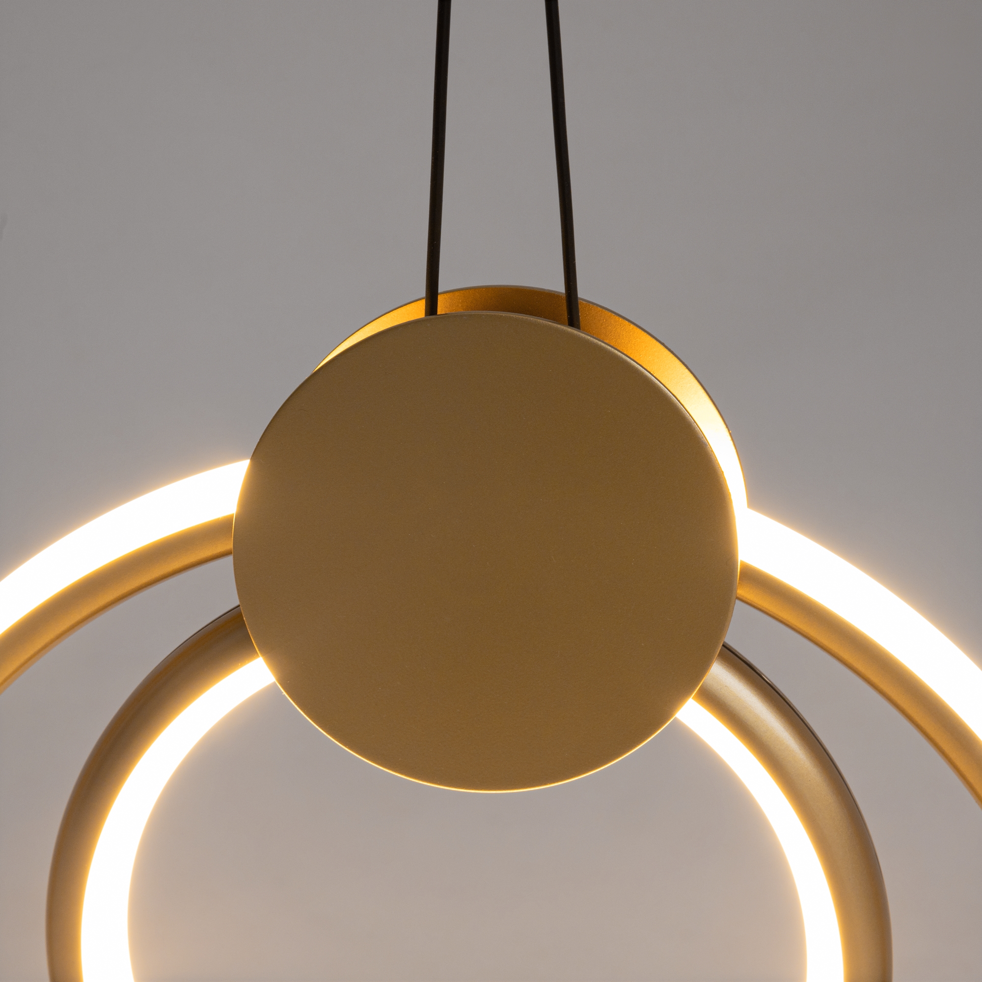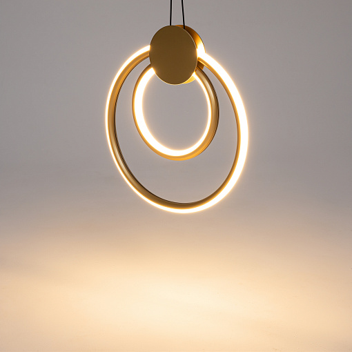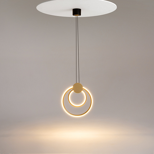 Серия Link представлена подвесными и настенными светильниками с разной вариацией светодиодных колец. Арматура - из металла в цвете латунь с чёрными элементами. Источник света — LED-кольца. Цветовая температура — 3000 K. Угол рассеивания — 125 градусов. Провод регулируемый, 3 метра.