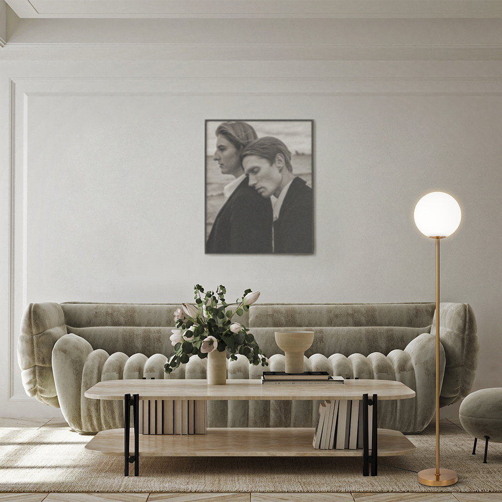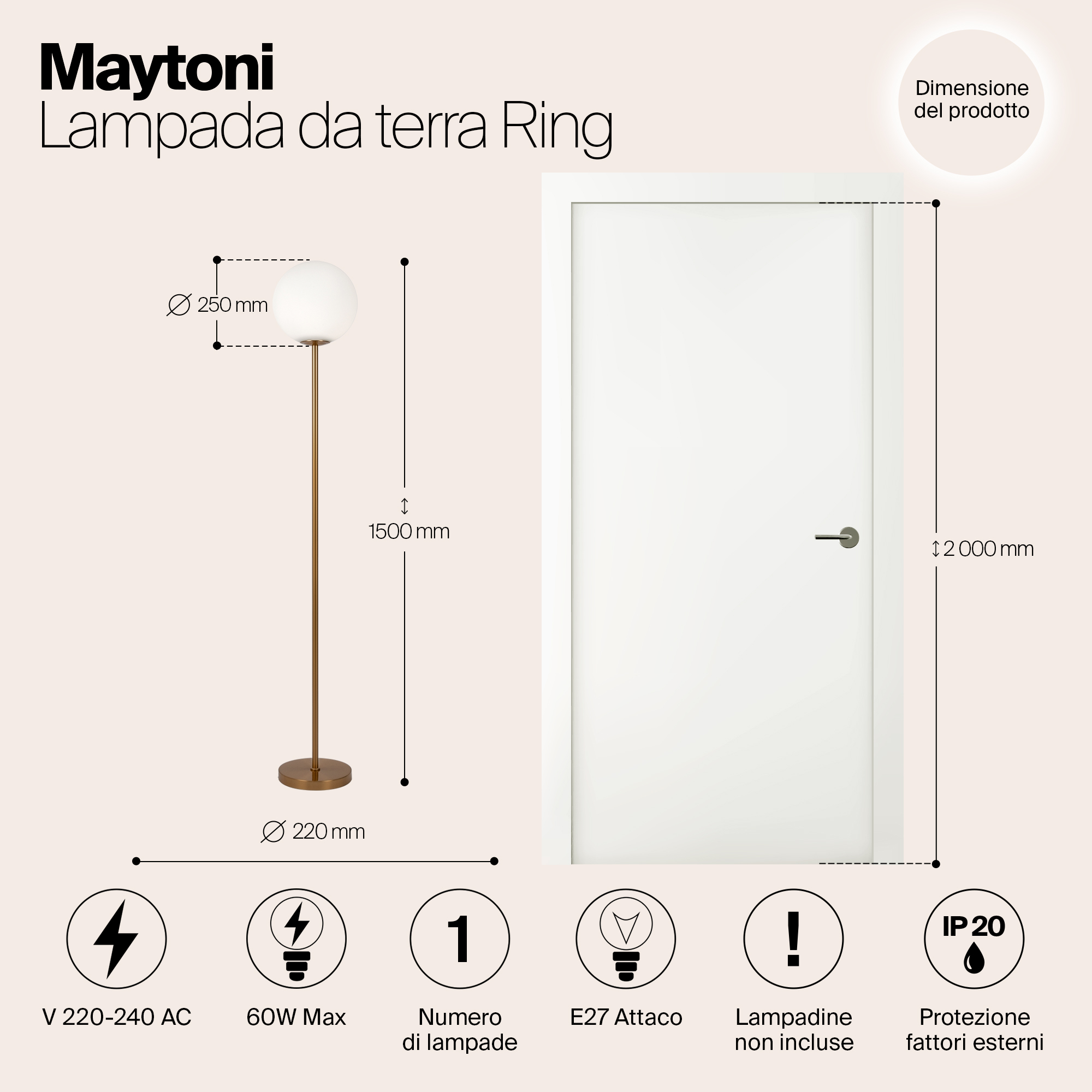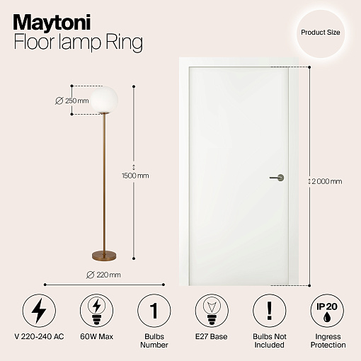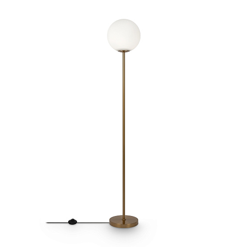 Арматура из металла в трех оттенках: белый, черный, латунь. Плафоны-сферы закреплены на округлом металлическом каркасе. Материал плафонов — выдувное стекло, цвет — белый. Высота подвесных моделей регулируется.