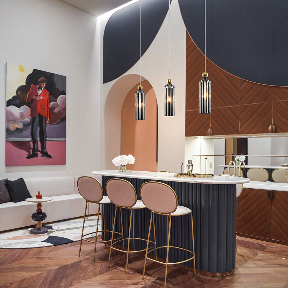 Металлическая арматура в цвете золота.Стеклянные плафоны нескольких цветов: коньячный, белый, серый. Рифленая поверхность стекла усиливает световые эффекты. Источник света: цоколь Е14 и G9. Высота подвесных светильников регулируется сегментами штанги или с помощью трехметрового провода. Серия может использоваться в помещениях с высокими потолками. Доступны подвесные и настенные модели для создания разнообразных световых композиций.