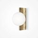 Арматура из металла, оттенки – матовый черный, латунь, хром. Плафон-сфера – стекло, цвет – белый. Скрытое крепление. Оригинальная геометрия в дизайне. Чистый теневой рисунок