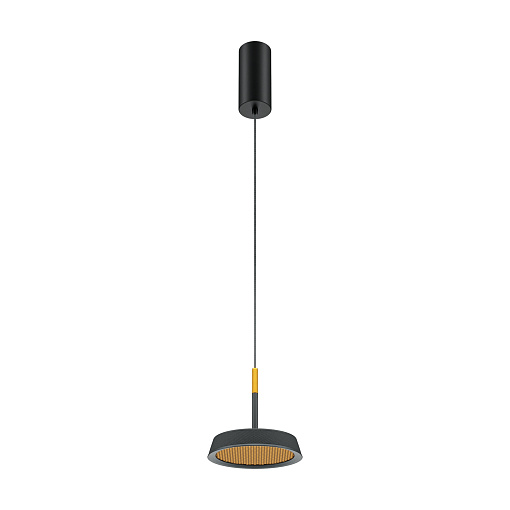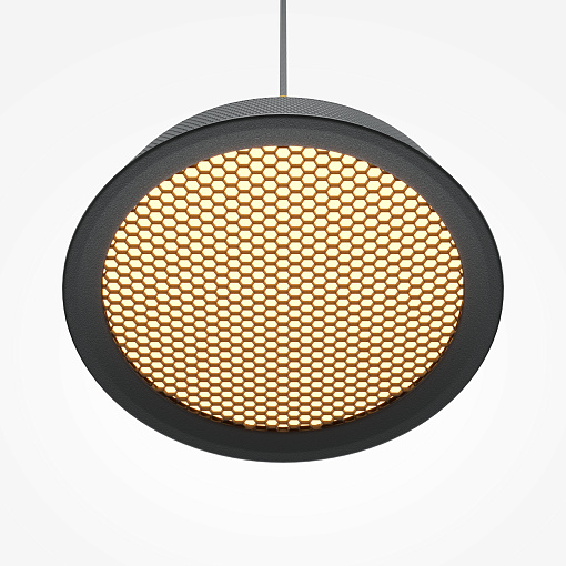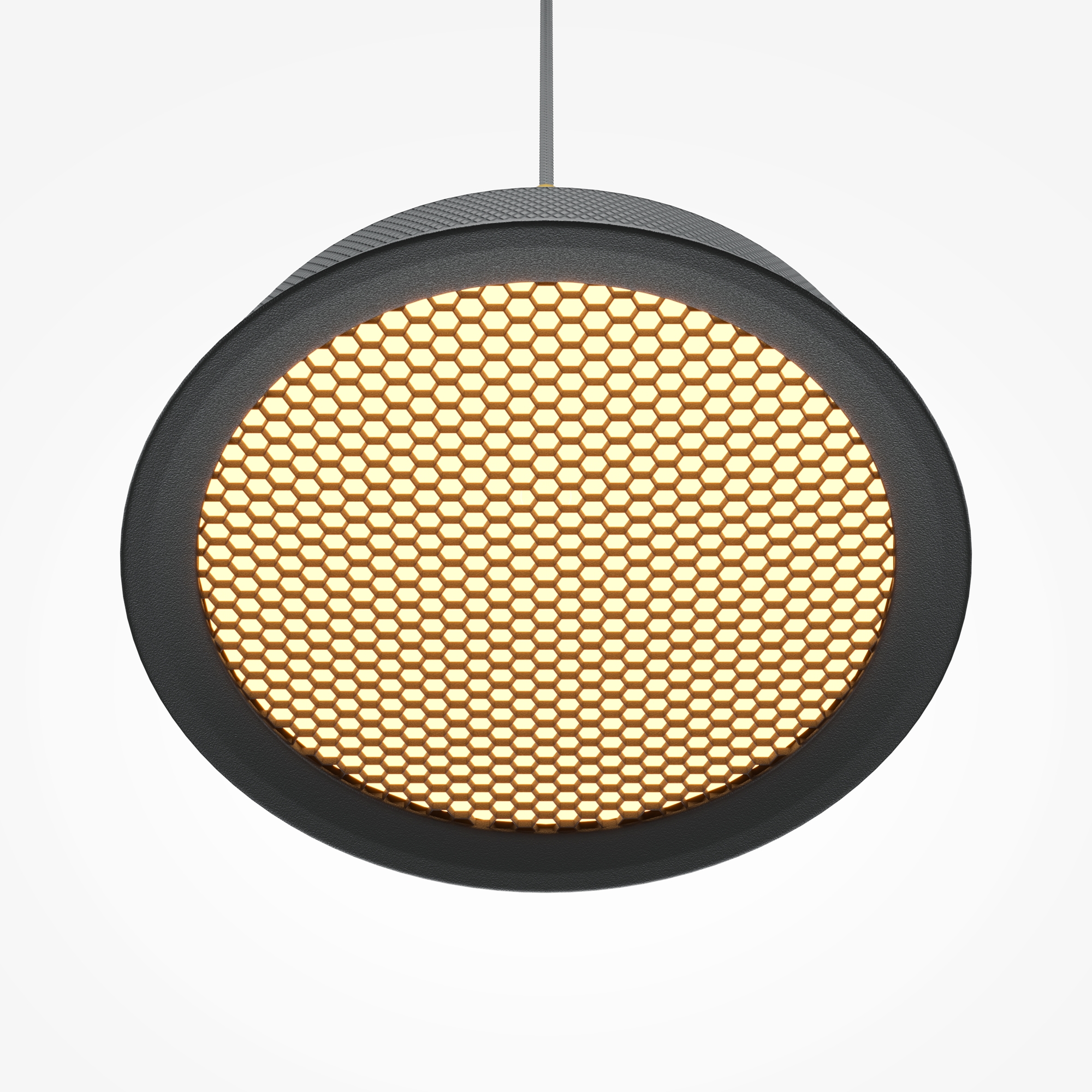 Металлический корпус, цветовая палитра - черный, белый, золото и терракотовый. Два  вида плафонов: «таблетка» с графичным рельефом из ассиметричных линий; «таблетка» + идеально-гладкая металлическая «тарелка». Дизайн вдохновлен супрематической эстетикой.  LED-источник света, цветовая температура - 3000К. Регулируемый провод - 3 метра.