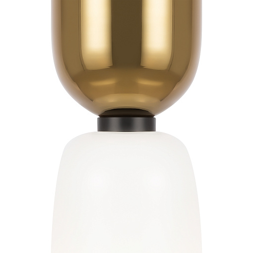 Металлическая арматура, цвет - черный. Светильники стилизованы под форму песочных часов с обтекаемой формой. Керамические элементы с глянцеовй глазурью. Подвесные светильники с плафонами из белой керамики с прозрачным, черно-белым, золото-белым и белым стеклом. Регулируемая высота подвесных светильников.