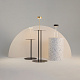 Портативный настольный светильник. Результат творческой коллаборации искусственного интелекта и предметного дизайнера. Два варанта корпуса светильника: с металлической тонкой ножкой на плоском круглом основании; со стеклянным основанием с интегрированным в него вазой. Плафон снимается с основания для удобного ухода за стеклянными элементами и подзарядки аккумулятора, расположенного в плафоне. Два варианта цвета стеклянных моделей - прозрачный и серый. Плафоны с рассеивателем из акрила в 3х цветах: черный, золотой, белый. Удобный сенсорный выключатель вверху плафона. Micro USB разъем для подзарядки скрыт в нижней части плафона. LED-источник света. Регулируемая цветовая температура от 2200К до 4000К.