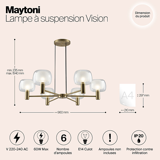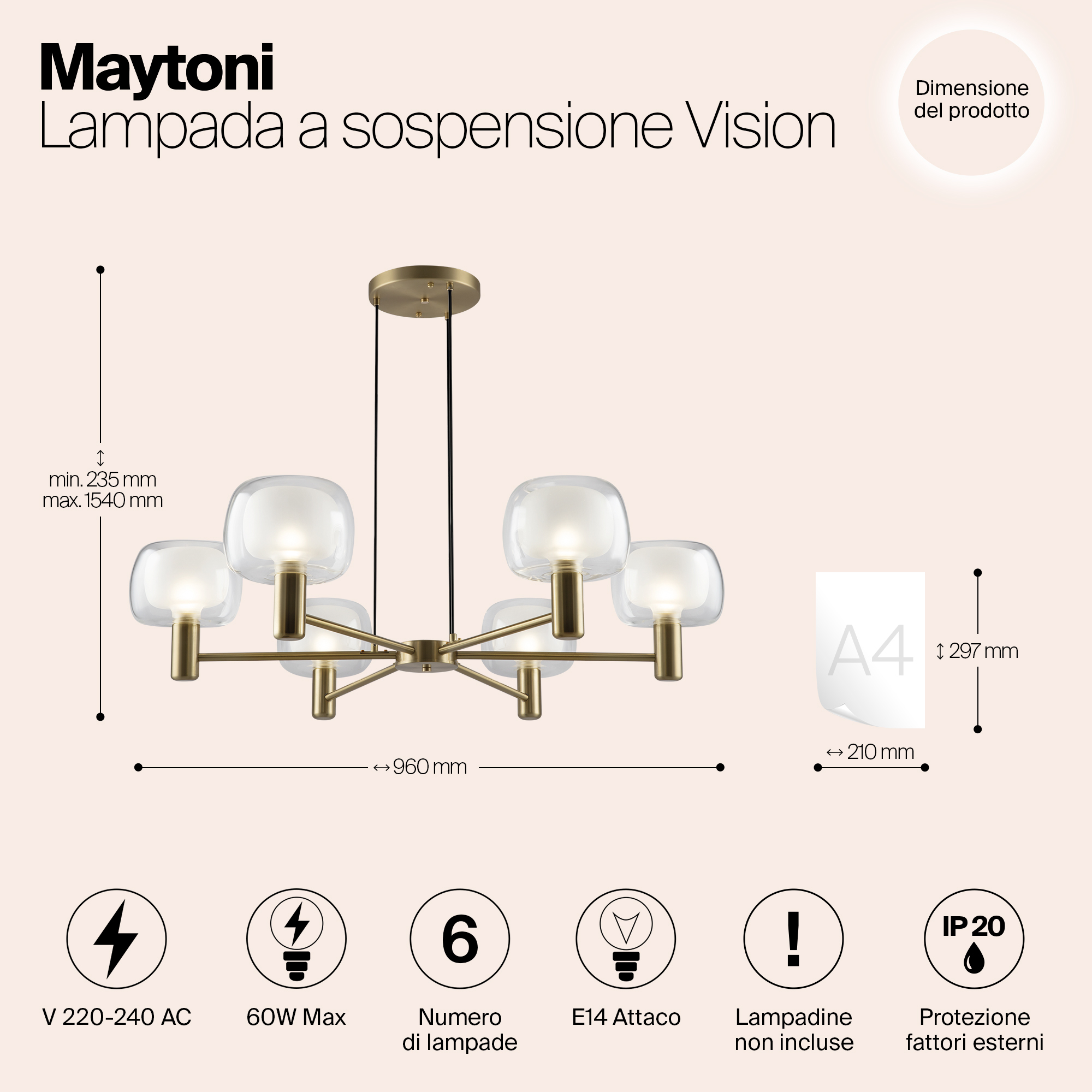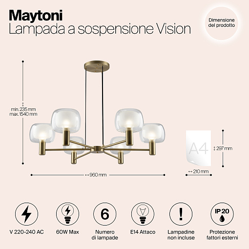 Арматура – алюминий, цвет – золото. Двойной стеклянный плафон: внутренний – матовый, внешний – прозрачный. Стиль – итальянская неоклассика. Культовые формы 60-х в дизайне.