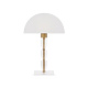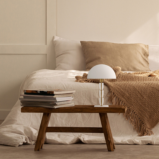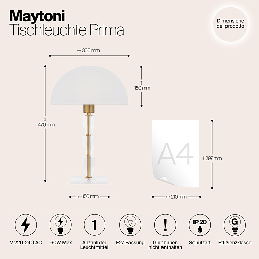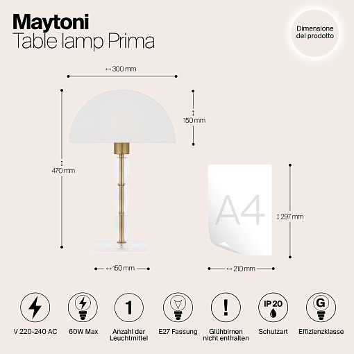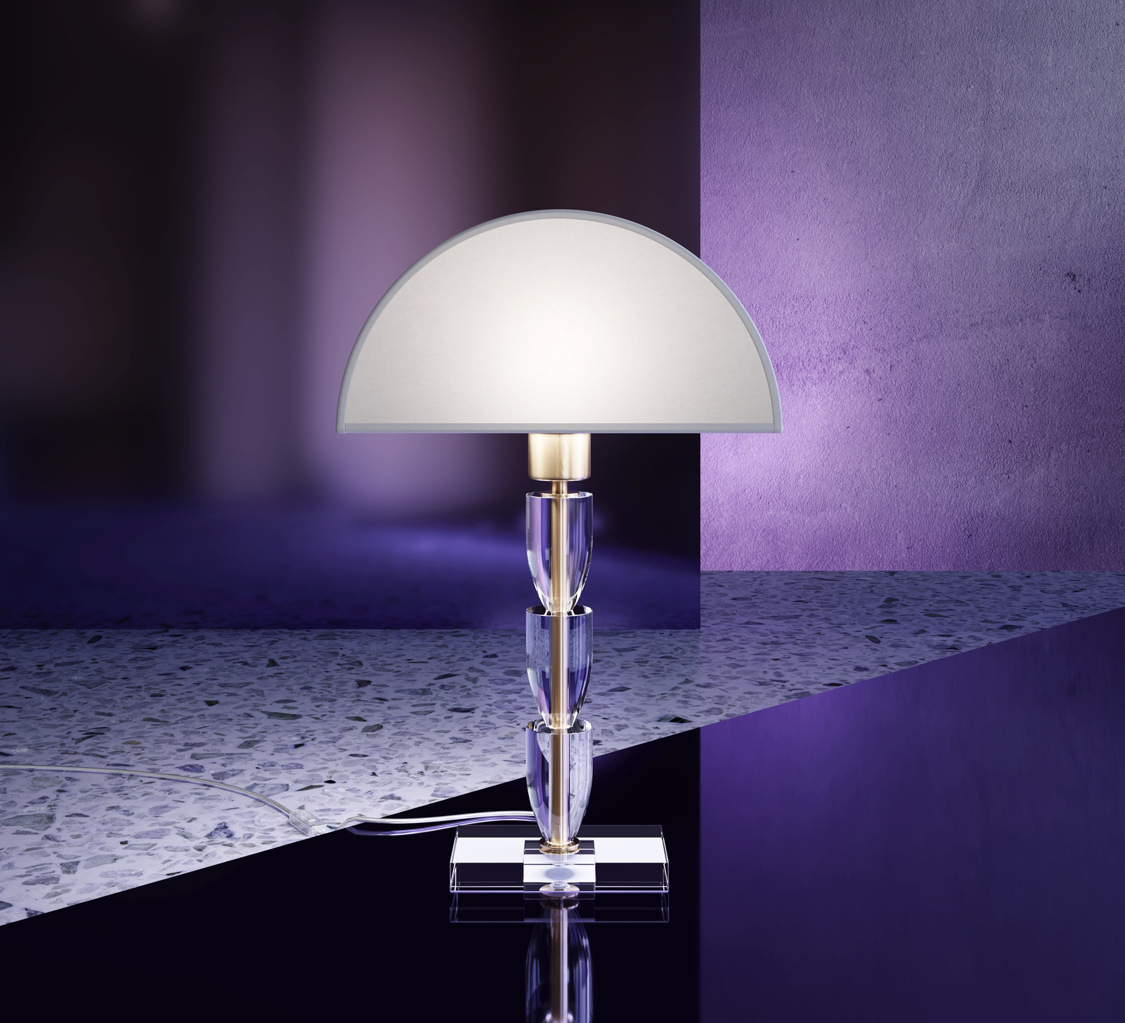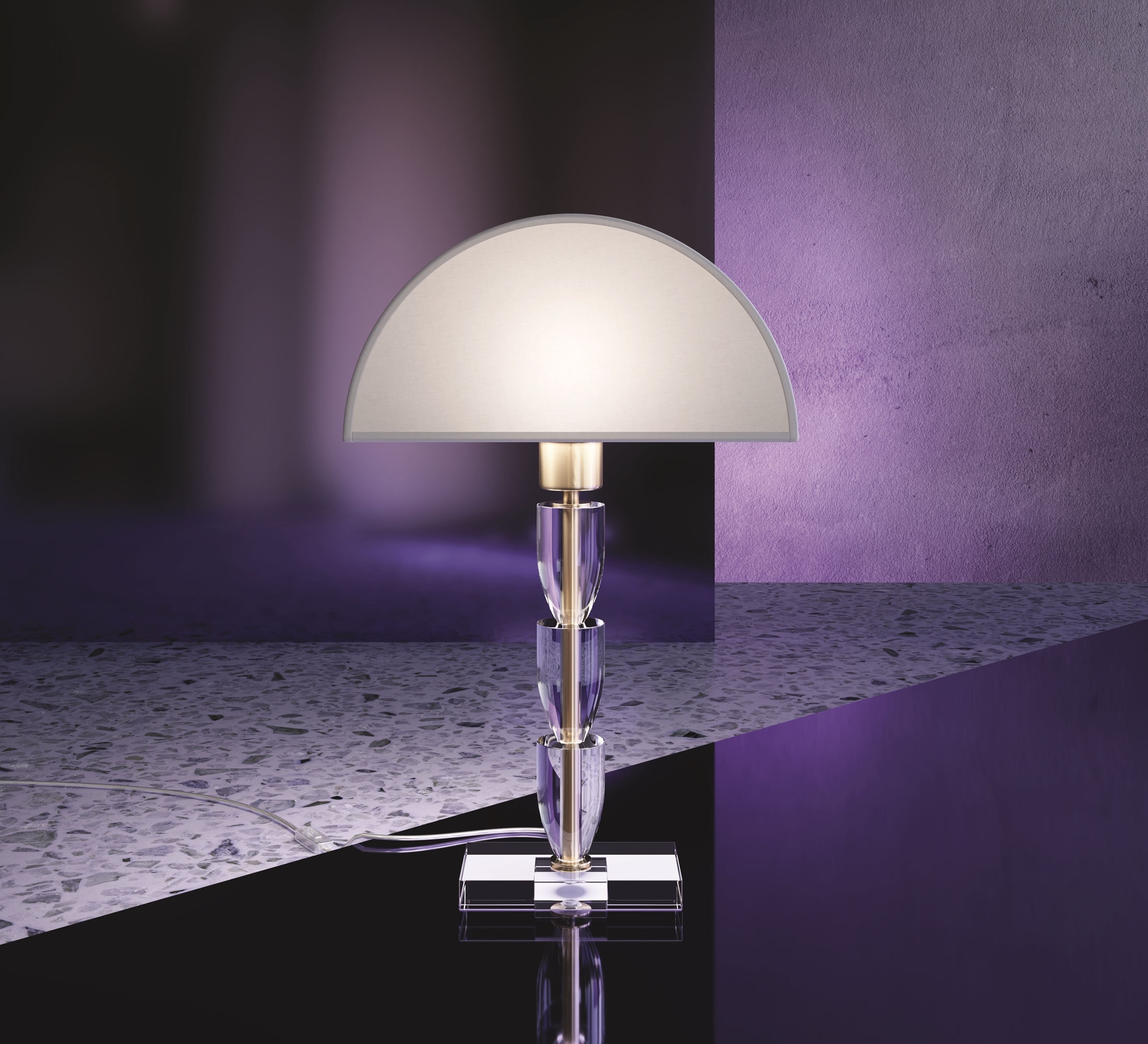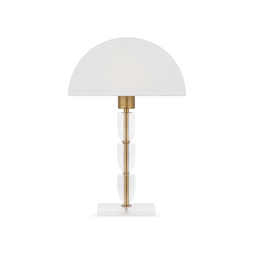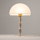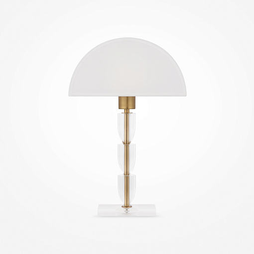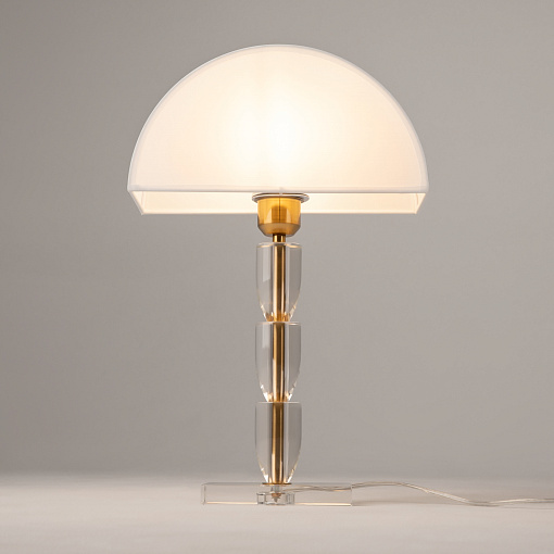 Арматура – металл, цвета – хром, латунь. Хлопковый абажур в белом цвете. Прозрачный акриловый декор в основании. Эстетика Баухауса, трендовая форма абажура. Источник света - лампа с цоколем Е27.