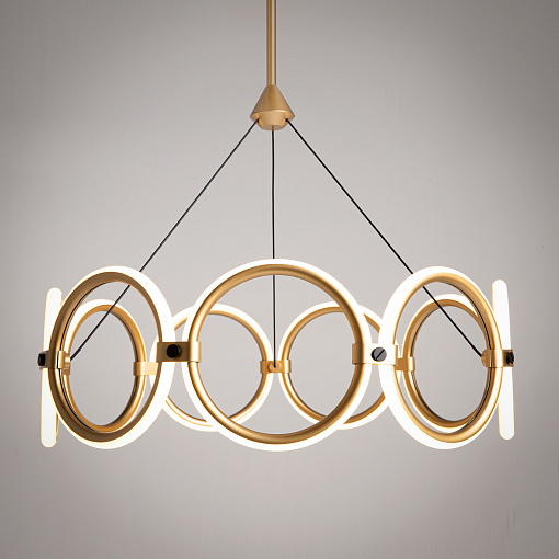 Серия Link представлена подвесными и настенными светильниками с разной вариацией светодиодных колец. Арматура - из металла в цвете латунь с чёрными элементами. Источник света — LED-кольца. Цветовая температура — 3000 K. Угол рассеивания — 125 градусов. Провод регулируемый, 3 метра.