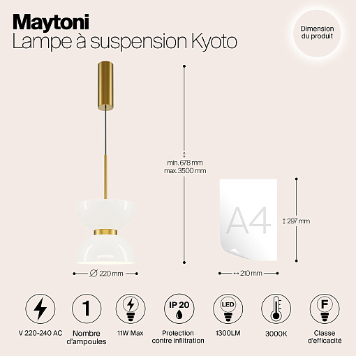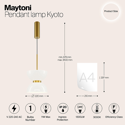 Материал арматуры – металл, цвет – черный, золото, белый. Мраморное основание в черном, сером, белом цветах. Плафоны из белого стекла. Дизайн светильника вдохновлен архитектурой одноименной древней японской столицы – Киото. LED источник света, цветовая температура - 3000К.