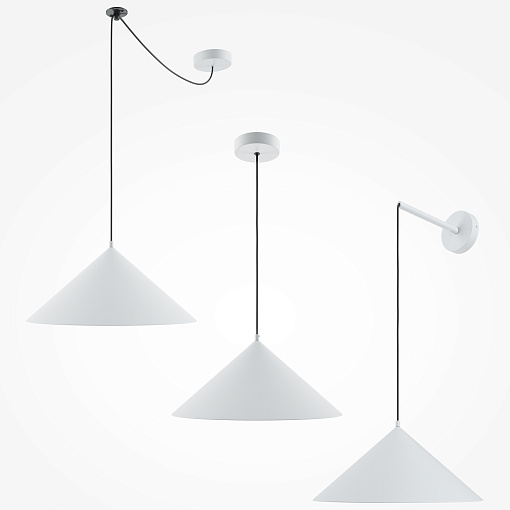 Материал арматуры - металл. Цвета - черный, белый, а также два актуальных оттенка серого. Универсальные и базовые формы плафонов. В комплекте: крюк, дополнительное основание и металлический элемент, которые позволяют закрепить подвес в нужной зоне или использовать его в качестве бра. Цоколь Е27. Лампы не входят в комлпект.