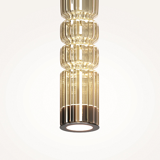 Арматура - металл, цвет - хром, черный. Цилиндрические плафоны из стекла с вертикальным рельефным рисунком в трех оттенках: прозрачный, коньячный, дымчатый. Метафора древнегреческих храмовых колонн в образе светильников. LED-источник света. Цветовая температура 3000К.