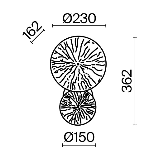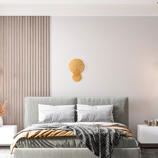 Арматура из металла, цвет — матовая латунь. Декор — ажурные диски в тон арматуре. Эффектный световой рисунок. Трендовые флористические мотивы в дизайне. Светильники серии легко комбинировать, создавая композиции. Источник света – лампа с цоколем Е14.