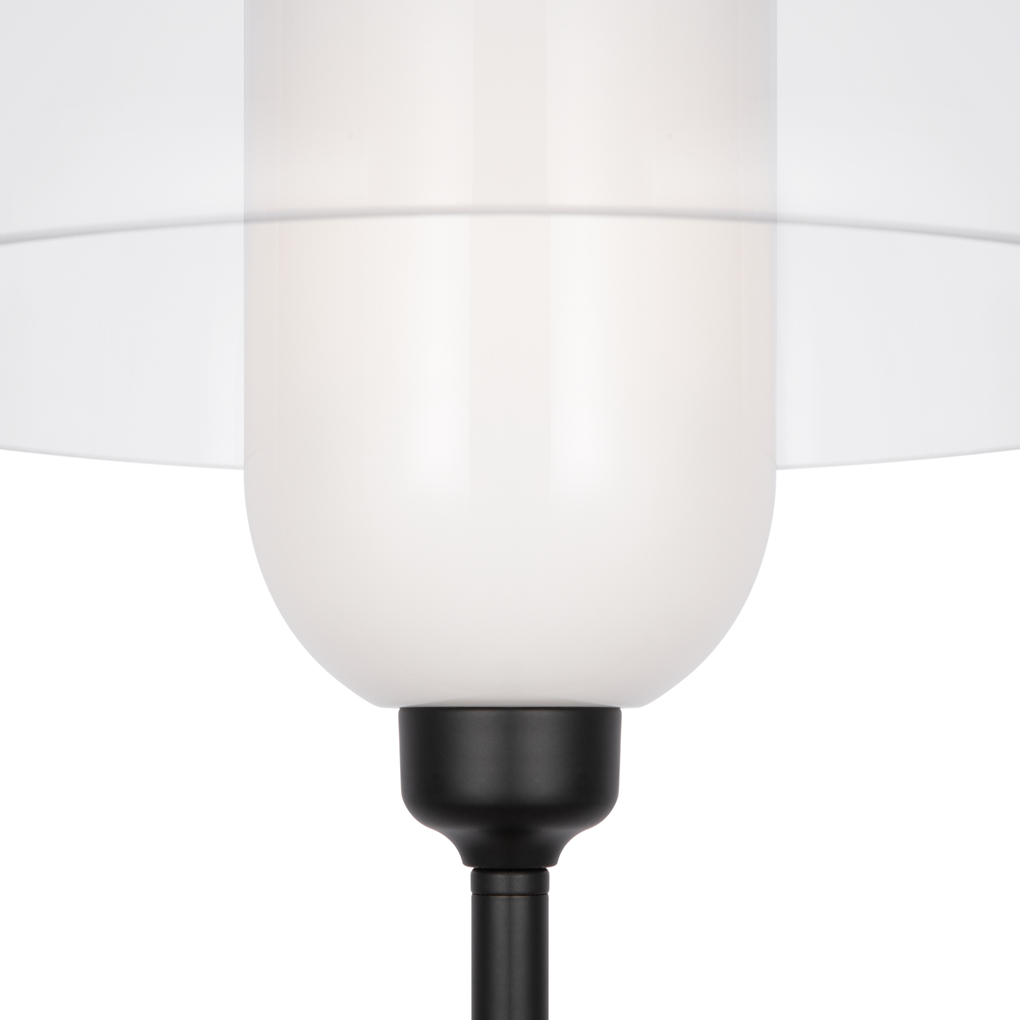 Металлическая арматура, цвет - черный. Светильники стилизованы под форму песочных часов с обтекаемой формой. Керамические элементы с глянцеовй глазурью. Подвесные светильники с плафонами из белой керамики с прозрачным, черно-белым, золото-белым и белым стеклом. Регулируемая высота подвесных светильников.