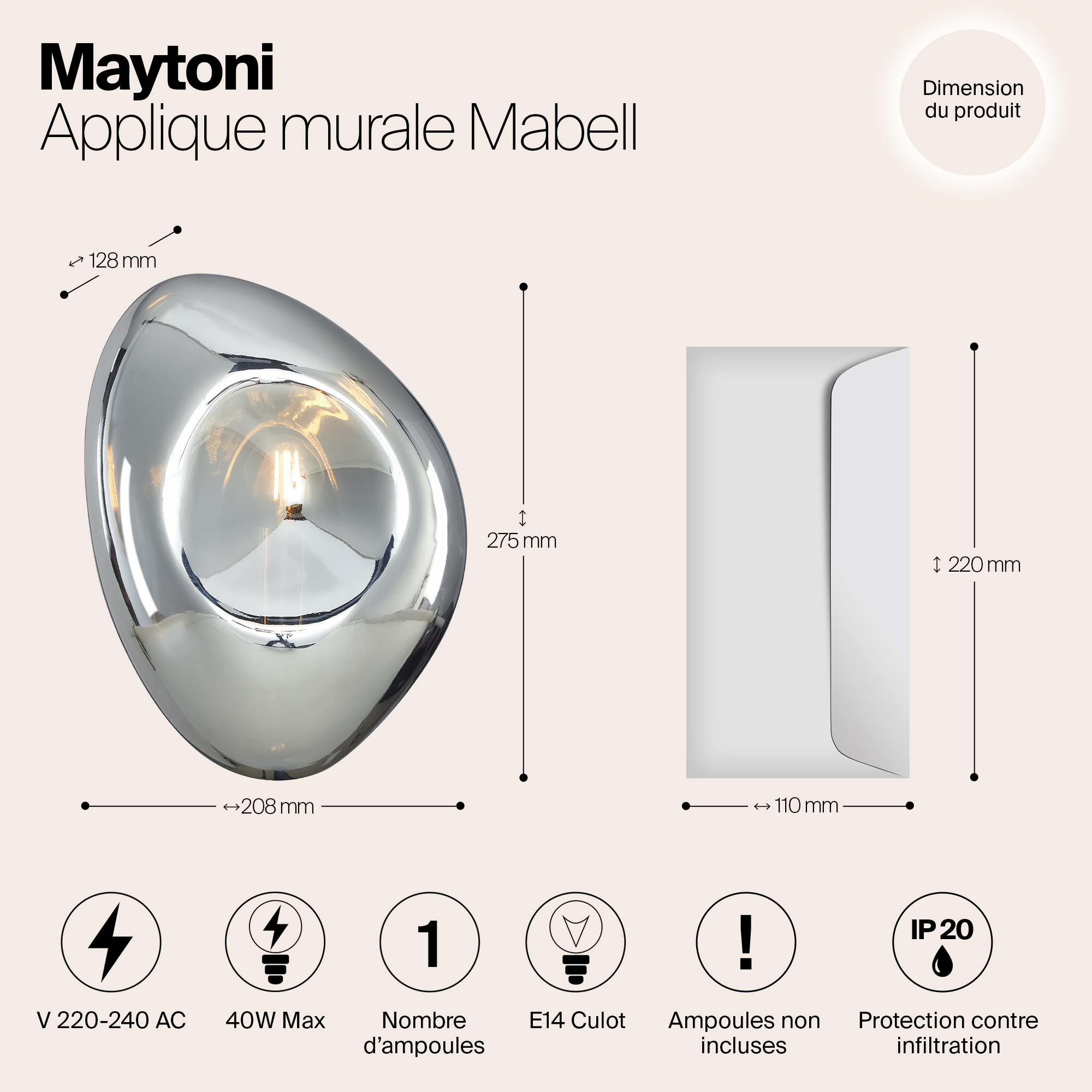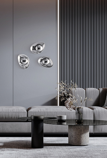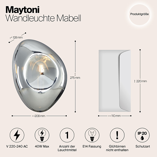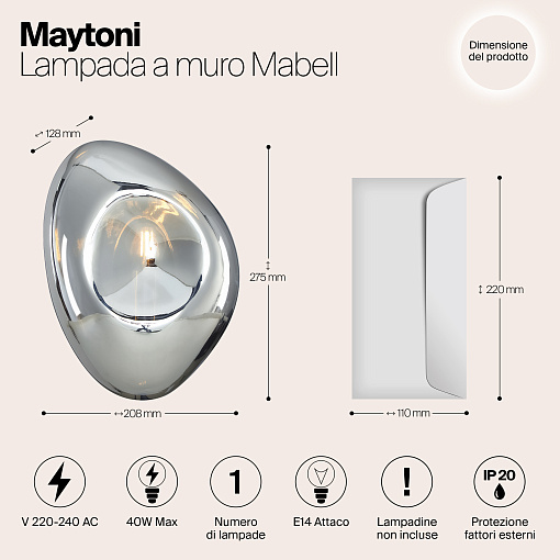 Подвижность и динамичность серии Mabell достигается за счет использования асимметричных геометрических форм, глянцевого покрытия и уникальной фактуры. Бра накладного монтажа дополняют подвесы серии. Плафоны из выдувного стекла представлены в трех оттенках, идентичных оттенкам подвесов: никель, золото и медь. Трендовый глянец добавит обстановке торжественного звучания и станет эффектным акцентным элементом. Все светильники выполнены в одном размере и снабжены цоколем на лампу Е14. Модели серии прекрасно сочетаются между собой. Комбинируя подвесы и бра, вы можете создавать разнообразные световые сценарии и составлять уникальные инсталляции.