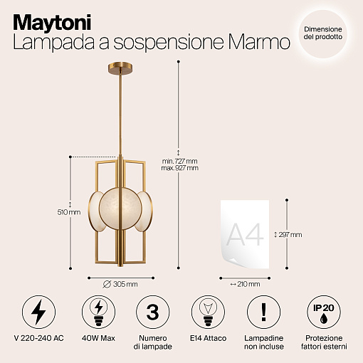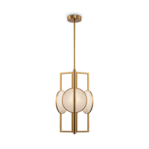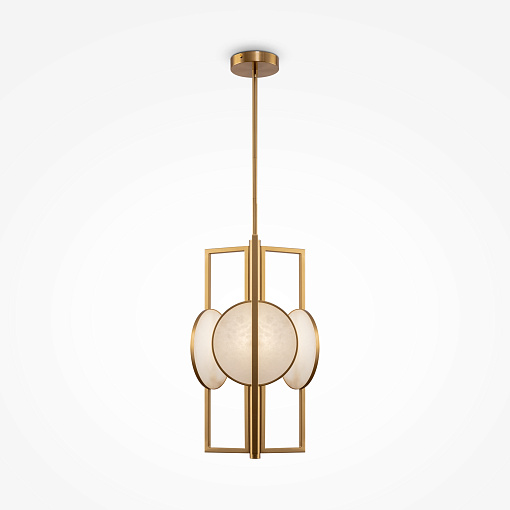 Металлическая арматура гальванизирована в цвет золота. Декор – пластины из натурального камня с текстурным рисунком. Сочетание прямоугольных линий и округлых элементов в дизайне. Цоколь Е14.