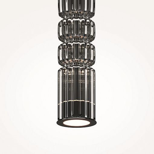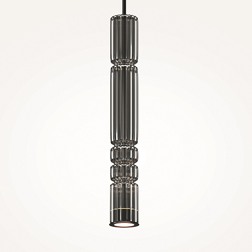 Арматура - металл, цвет - хром, черный. Цилиндрические плафоны из стекла с вертикальным рельефным рисунком в трех оттенках: прозрачный, коньячный, дымчатый. Метафора древнегреческих храмовых колонн в образе светильников. LED-источник света. Цветовая температура 3000К.
