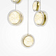 Арматура из металла цвета латунь с сатинированным финишным покрытием сочетается с прозрачными плафонами. Подвесные одинарные, горизонтальный и каскадные светильники оснащаются LED-модулем с двумя плоскими плафонами из акрила со сложным, актуальным паттерном на поверхности. Цветовая температура — 3000К, угол рассеивания — 125 градусов.