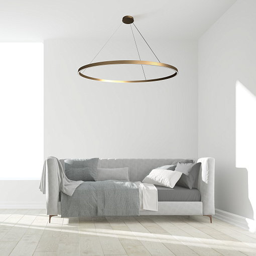 Материал арматуры — алюминий, оттенки — черный, латунь. Актуальная форма окружности. Положение колец подвесных моделей регулируется. Бра с источником света, направленным на стену — трендовая отраженная подсветка. Интегрированные LED-источники света. Цветовая температура 3000К или 4000К – устанавливается на этапе монтажа. Диммируемая яркость.