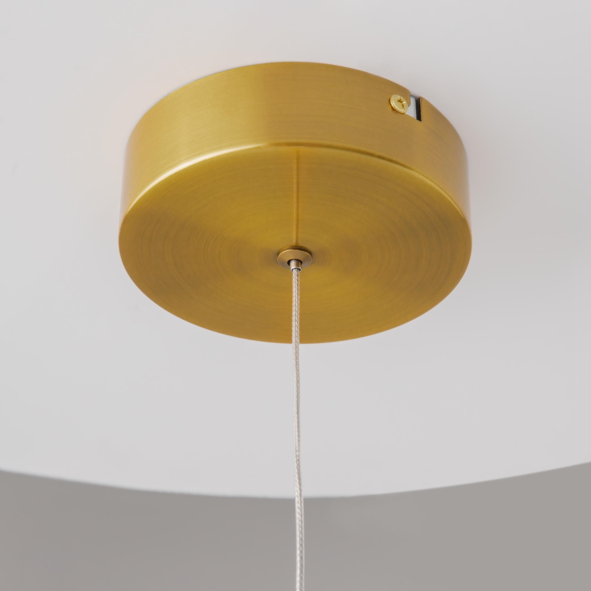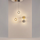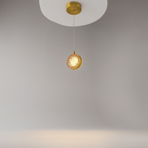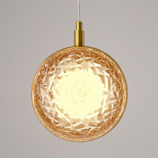 Два цветовых сочетания: сатинированная арматура из металла в цвете латунь в комбинации со стеклянными плафонами янтарного оттенка или  трендовый черный хром с глянцевым финишем в сочетании с тонированными светло-серыми плафонами. Источник света: LED. Цветовая температура 3000К, угол рассеивания 120 градусов. Провод длиной 3 м можно регулировать по высоте — светильник подходит для помещений с высокими потолками.