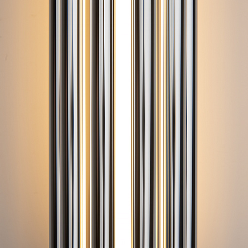 Алюминиевая арматура в двух оттенках: латунь, хром. Мягкий акриловый рассеиватель, плавное распределение света. Декор – металлические трубки в тон арматуре. LED-источник света, цветовая температура 3000К.