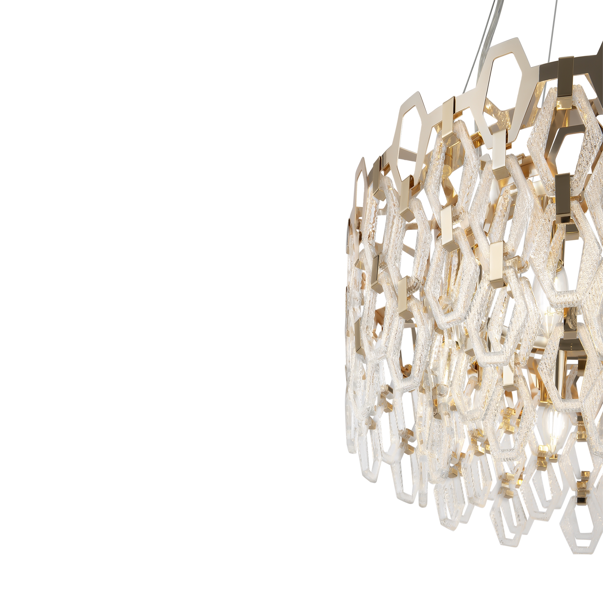 Арматура – металл, цвет – золото. Декоративные подвески – фактурное стекло и металлические пластины. Трендовые геометричные формы. Эффектная игра света в декоре. Широкий ассортимент для общего и зонального освещения.