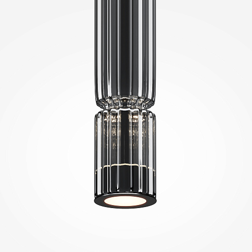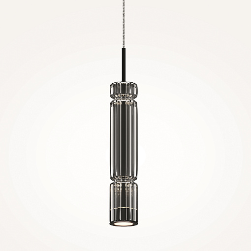 Арматура - металл, цвет - хром, черный. Цилиндрические плафоны из стекла с вертикальным рельефным рисунком в трех оттенках: прозрачный, коньячный, дымчатый. Метафора древнегреческих храмовых колонн в образе светильников. LED-источник света. Цветовая температура 3000К.