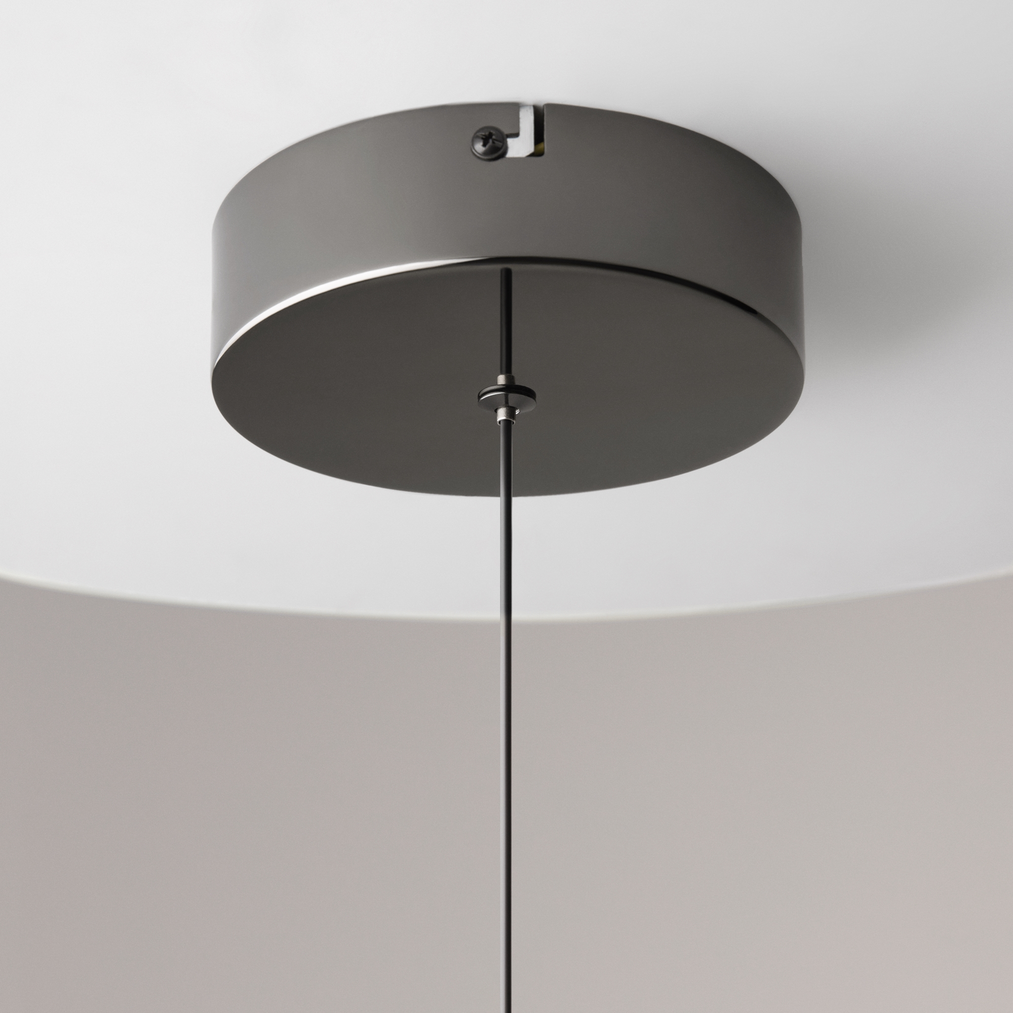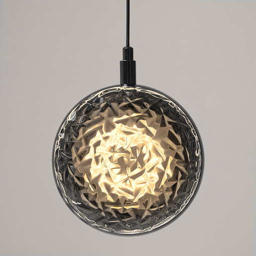 Два цветовых сочетания: сатинированная арматура из металла в цвете латунь в комбинации со стеклянными плафонами янтарного оттенка или  трендовый черный хром с глянцевым финишем в сочетании с тонированными светло-серыми плафонами. Источник света: LED. Цветовая температура 3000К, угол рассеивания 120 градусов. Провод длиной 3 м можно регулировать по высоте — светильник подходит для помещений с высокими потолками.
