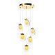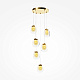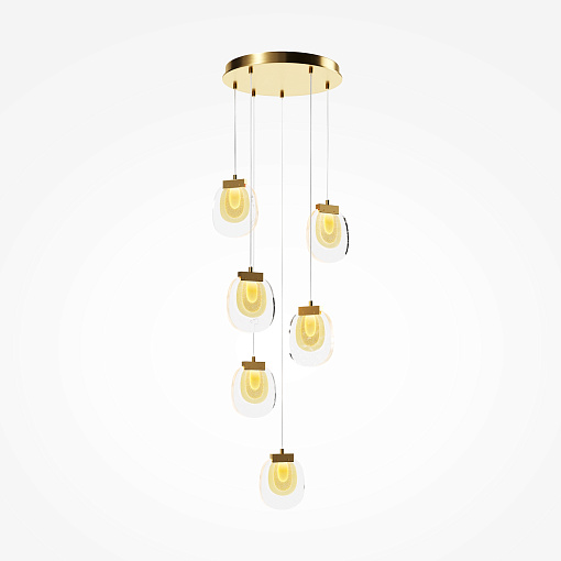 Цвет арматуры — латунь. Материал арматуры — металл. Подвесные светильники и бра. Цветовая температура 3000К. LED-источник света. Плафоны выполнены из прозрачного стекла, с акцентным многослойным рисунком. Регулируемая длина провода подвесных светильников до 3 метров, подходит для помещений с высокими потолками. Каскадная композиция на 9 плафонов оснащена проводом длиной 3,5 метра для эффектных дизайнерских решений. Специальная технология окрашивания литого стекла создает эффектный вид как при выключенном, так и при включенном свете.