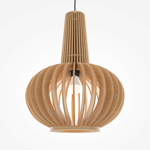 Материал арматуры – металл, цвет – черный.    Абажур – 5-ти  слойная фанера бежевого оттенка, покрытая специальным ла-  ком. Тканевый черный провод. Регулируемая высота. Простые  лаконичные форма, природные материалы. Цоколь E27.